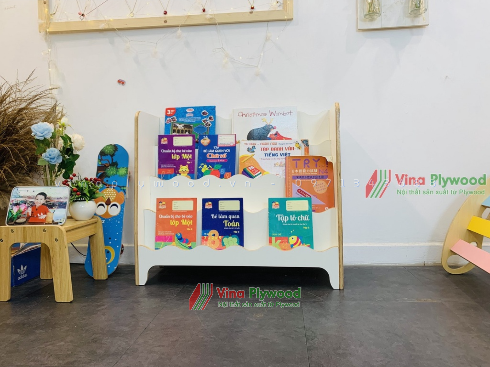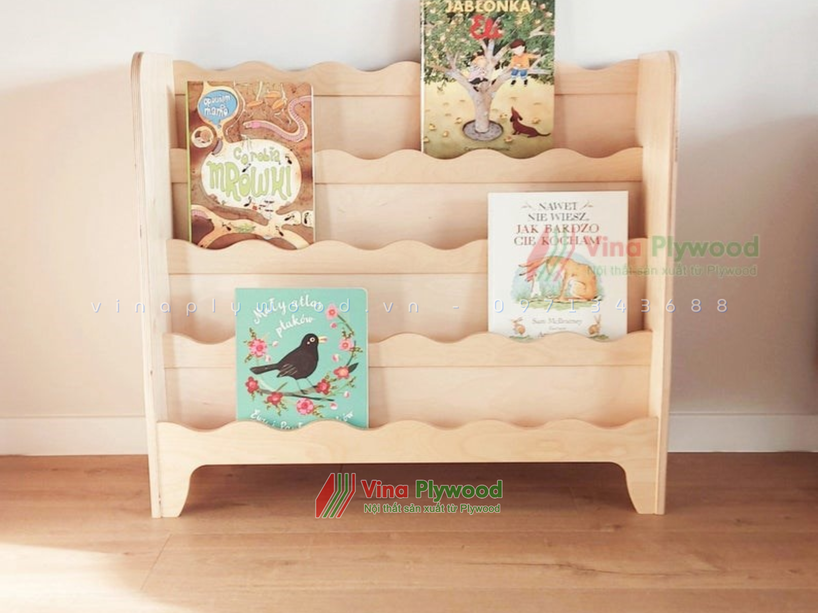 -Giá sách có thiết kế 4 tầng để sách theo chiều thẳng đứng, giúp bé nhìn hết được hình và chữ của sách, dễ dàng lựa được cuốn sách ưa thích của mình. Đồng thời, cách thiết kế này giúp bé thuận tiện hơn khi lấy sách và đặt sách trở lại trên kệ.Với thiết kế mỗi tầng theo đường lượn sóng tạo cảm giác mềm mại , không quá cứng nhắc.